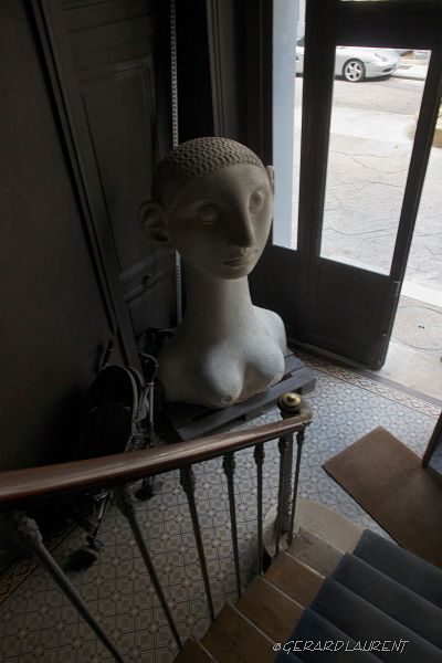 Quelle émotion que cette rencontre avec ce buste mystérieux qui semble garder l’escalier de cet immeuble de la rue des Francs Bourgeois et dont je n’avais pas remarqué la présence à mon arrivée. Comme le Sphinx à Oedipe, allait-il me poser une question pour me laisser sortir? Les méfaits du temps et peut-être des passages répétés des habitués des lieux sur ses seins victorieux ont eu tôt fait de me rassurer tout en me plongeant dans la tristesse. Rien n’arrête le temps qui passe ni l’homme pressé de retrouver la ville et sa rumeur.