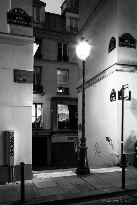 A l’angle des rue du Caire, du Nil et d’Aboukir, deux petites rues se donnent la main pour une ronde, les rues de Damiette (toujours ce parfum oriental) et la rue des forges. C’est là , très précisément, au centre du cercle, que se situait la fameuse cour des miracles. Le quartier, même débarrassé de ses mendiants et de son chef, le roi de Thunes, par le lieutenant de police La Reynie en 1667, garda longtemps sa mauvaise réputation. Il faut dire que Victor Hugo s’employa avec son immense talent à en perpétuer le souvenir et que malfrats corses et marseillais, plus près de nous, en avaient fait leur quartier général. Plus de danger aujourd’hui : les malandrins ont disparu ou ne se montrent plus et les prostituées sont cantonnées plus à l’est, vers la rue saint Denis et la rue Blondel, où évidemment je ne conseillerai à personne de photographier les passants pour le « pittoresque »… Mais sur le petit périmètre de ce qui fut le centre de la pauvreté et de l’exclusion de la capitale, ce sont les ateliers de couture qui ont pris le relais et, pour accompagner vos pas, le ron-ron des machines à coudre ou le roulement sonore des chariots des petits journaliers qui déménagent portants de robes ou cartons de fringues branchées d’un magasin à l’autre. C’est le moment de guetter ce que sera la mode de cet été: les chapeaux et les rubans font un retour en force et les pastels seront de mise. Il n’y a plus qu’à dénicher le petit haut pour aller avec. (2006)